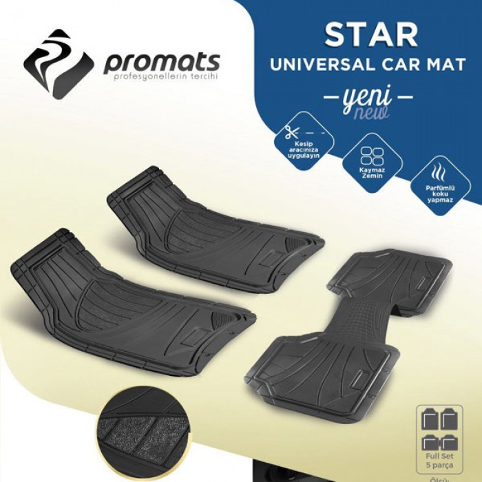 Promats Star Üniversal Kauçuk Oto Paspas Şaft Üstü 5 Parça