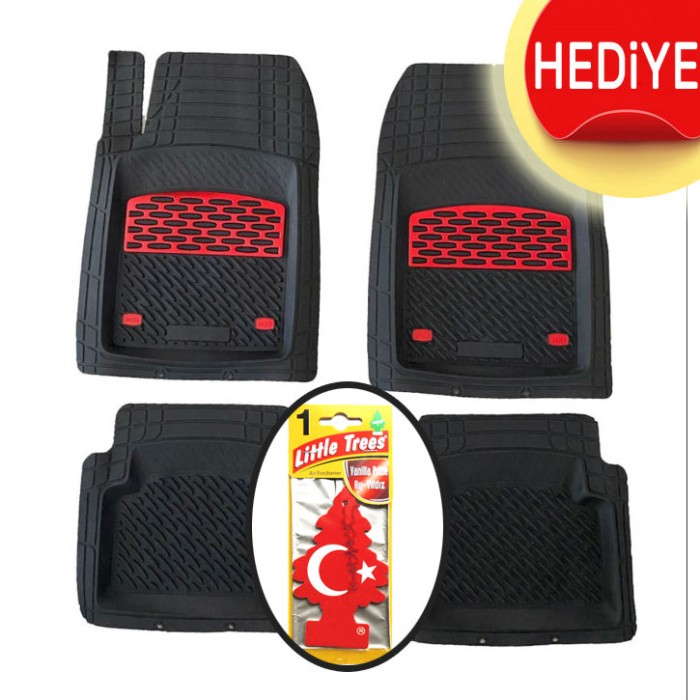 Safir Krom Kırmızı Oto Kauçuk Paspas Derin Kesilir+Koku Hediye