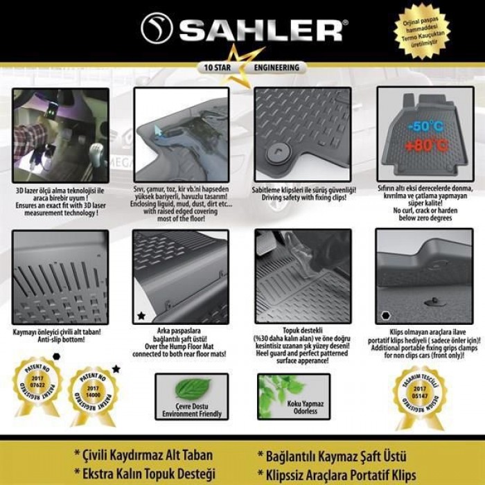 Sahler Vw Polo 02-09 havuzlu 4,5D oto paspas setidir. Sahler marka ŞAFT ÜSTÜ korumalı 4,5D paspas setidir. Plastik malzeme kullanılmamış, ekolojik üründür. Kir, toz, çamur vb. maddeleri havuzlu yapısı yani kenar bariyerleri sayesinde hapseder ve paspasın altına geçmesini engeller. Araca özel, birebir kesilmiştir. Paspas kenarında havuzu vardır. Kaymaz yüzeyi ile araç içinde hareket etmez. -50 dereceden +80 dereceye kadar ısı değişimlerinden kesinlikle etkilenmez ve genişleme, çatlama, kıvrılma yapmaz. Büyük otomotiv üreticilerinin tercih ettiği TPE yeni nesil TERMO KAUÇUK tan imal edilmiştir. Kolayca temizlenir. Sadece belirtilen araca uygundur.